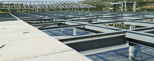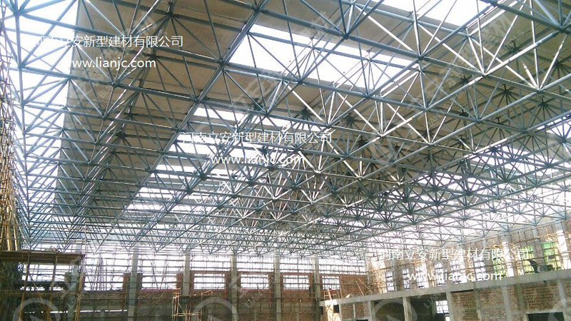 鋼骨架輕型板適用于輸煤棧橋、公共民用等建筑圍護(hù)屋面、樓面、墻面.鋼骨架輕型板由輕型鋼骨架、冷拔鋼絲網(wǎng)、改性水泥珍珠巖復(fù)合芯材(專有技術(shù))、復(fù)合抗?jié)B耐磨涂層(專有技術(shù))組成.鋼骨架輕型板集輕質(zhì)、承重、節(jié)能、防火、隔聲、泄爆、抗震等功能于一體,既保持了傳統(tǒng)鋼筋混凝土構(gòu)件安全度高、使用壽命長的優(yōu)點(diǎn),又滿足了現(xiàn)代建筑對(duì)輕質(zhì)、節(jié)能、環(huán)保的要求。